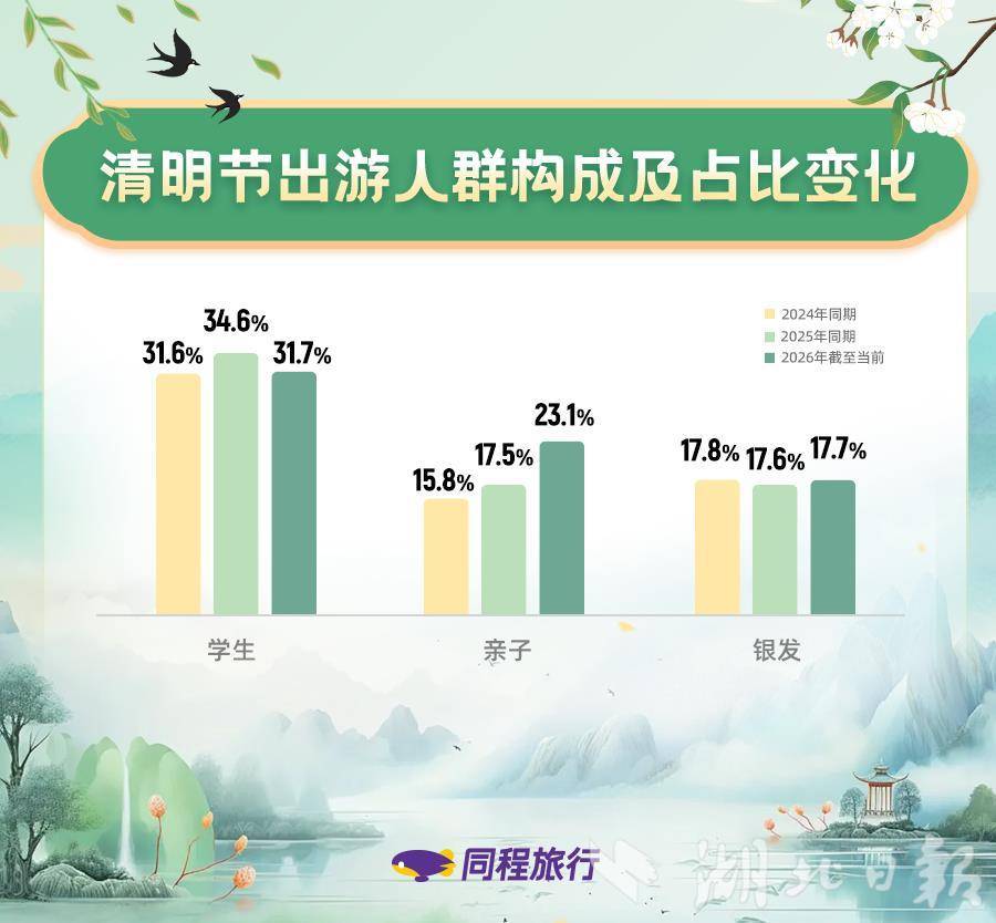 春假与清明假期衔接,全国多地迎来超长连休。日前,湖北多地也公布2026年春假安排,共同催生火热“清明黄金周”。同程旅行数据显示,截至3月23日,4月1日至6日假期里,机票、酒店民宿、景区门票等预订热度同比接近翻倍,长线游、出境游、赏花寻味全面升温。